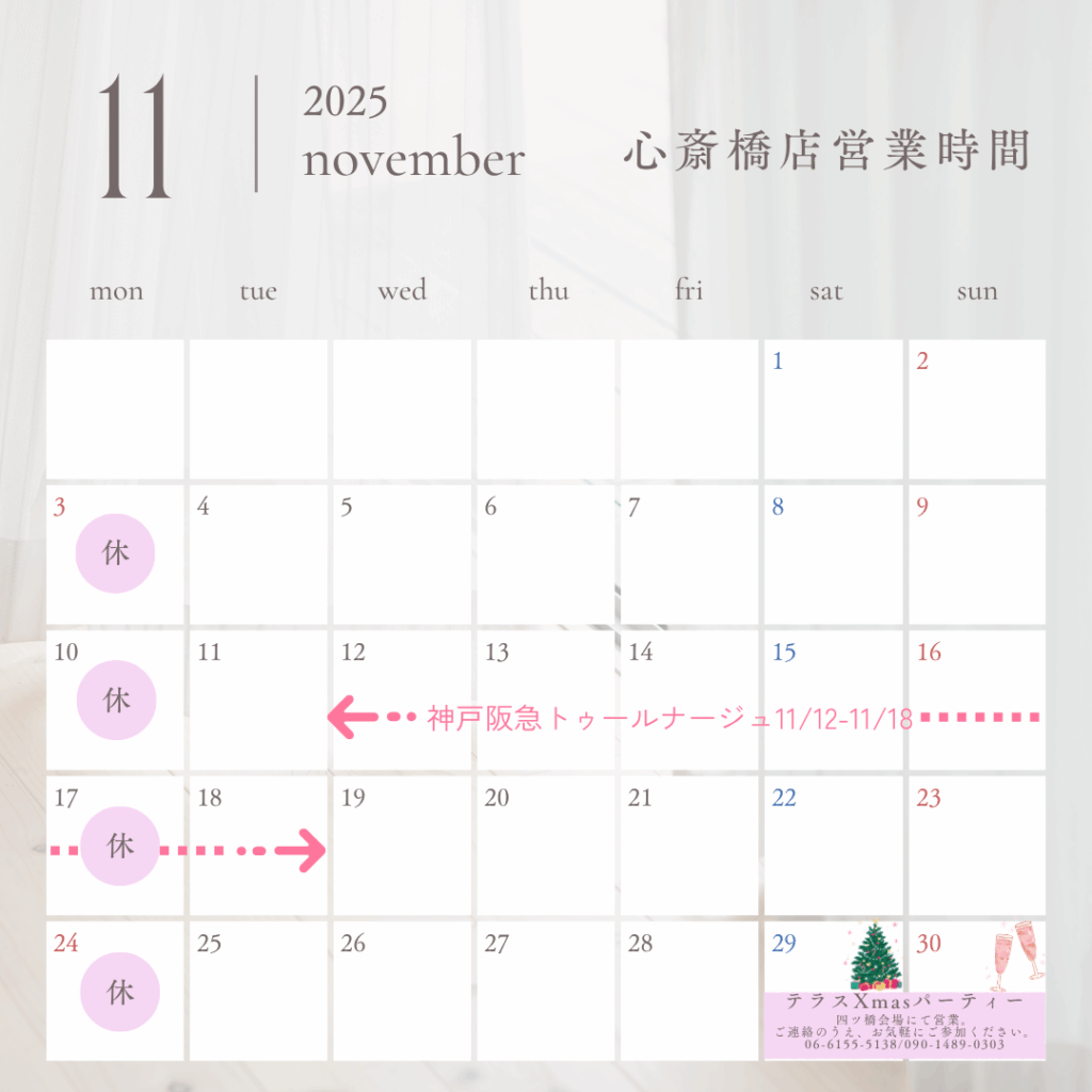11月の心斎橋店の営業日のご案内です。