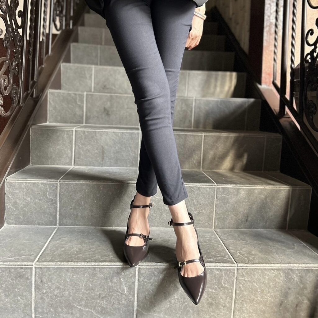 ダークブラウンが足元から上品に仕上げてくれます👍