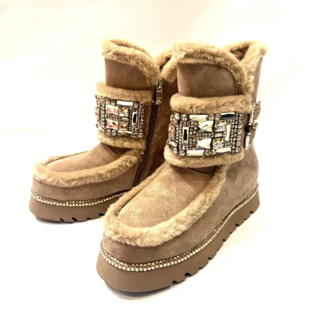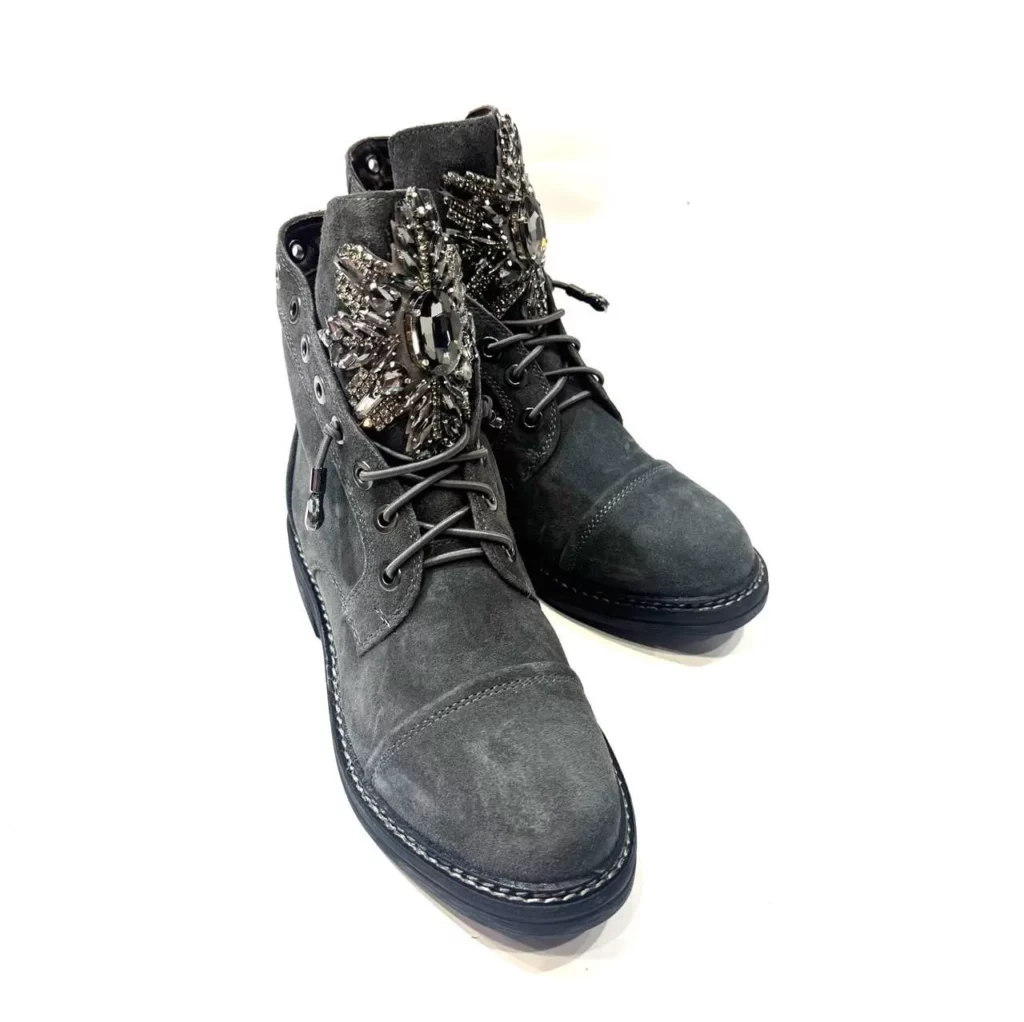 上質なスエードにゴールドスタッズとビジューを散りばめた、