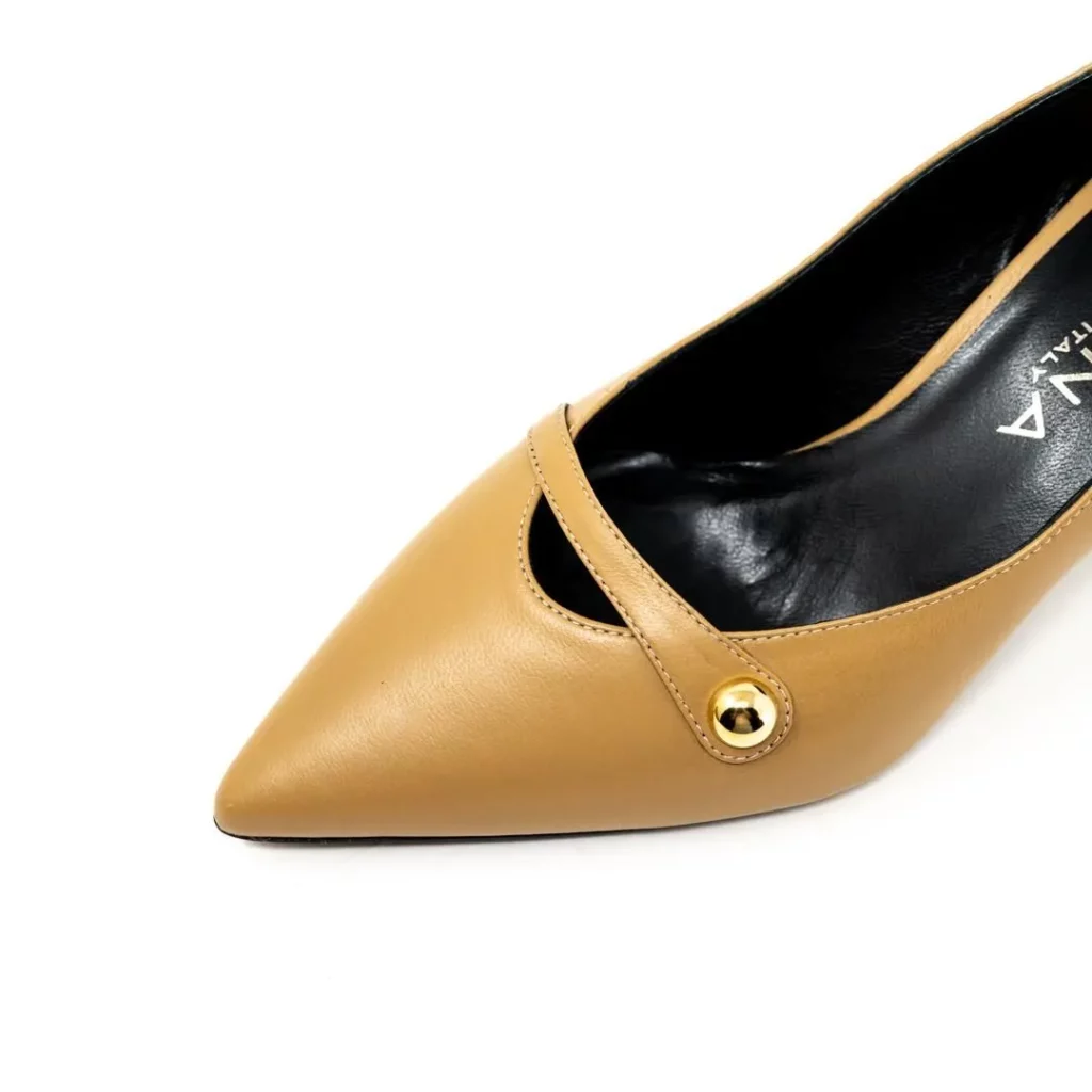 1/20艶感あるレザーが高級感溢れるキャメルカラーパンプス
