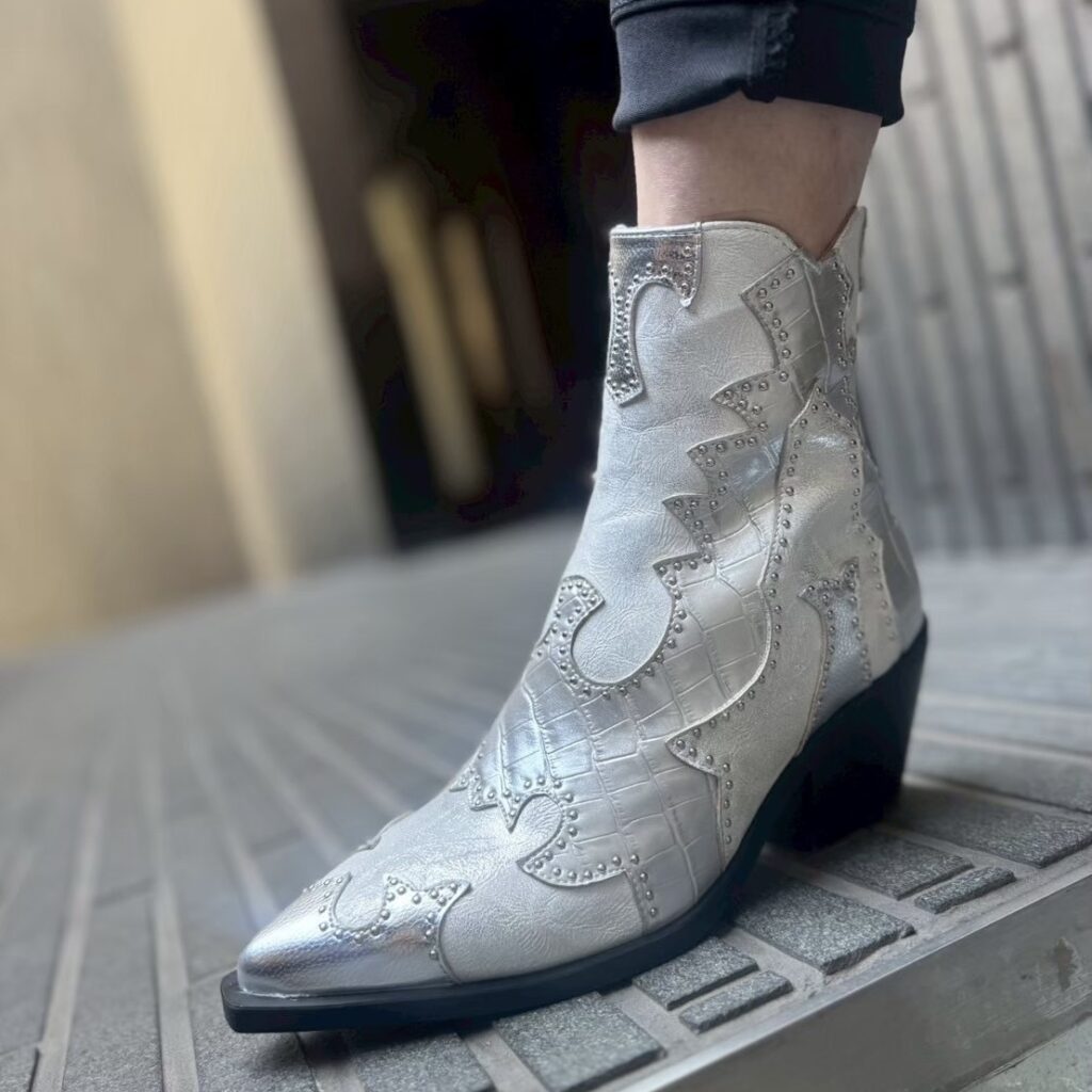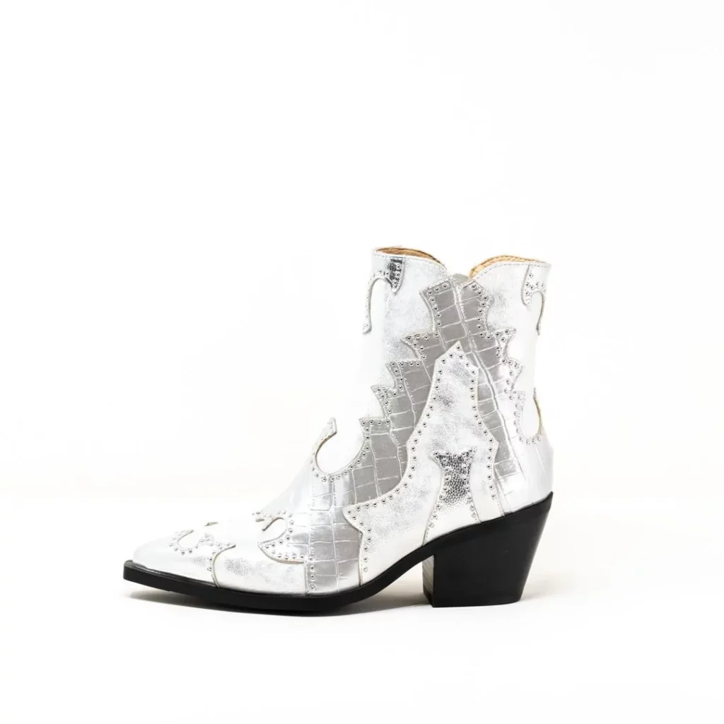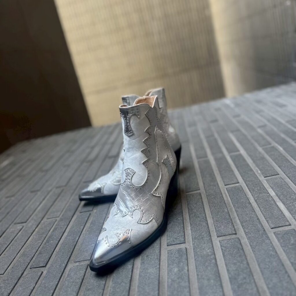 ウェスタンのモダンなカッティングを取り入れながらも、白やメタリックシルバーを使用することでエレガントな装いにも合わせていただけます😊