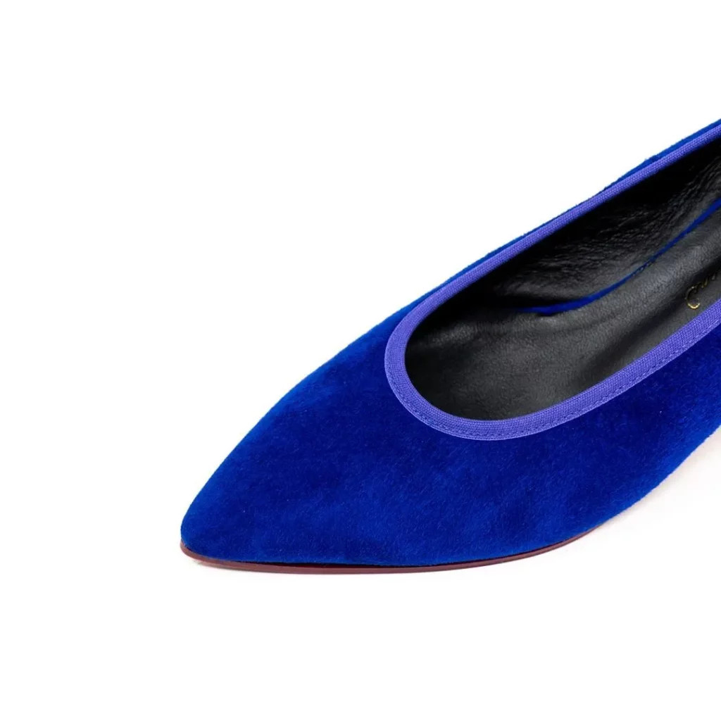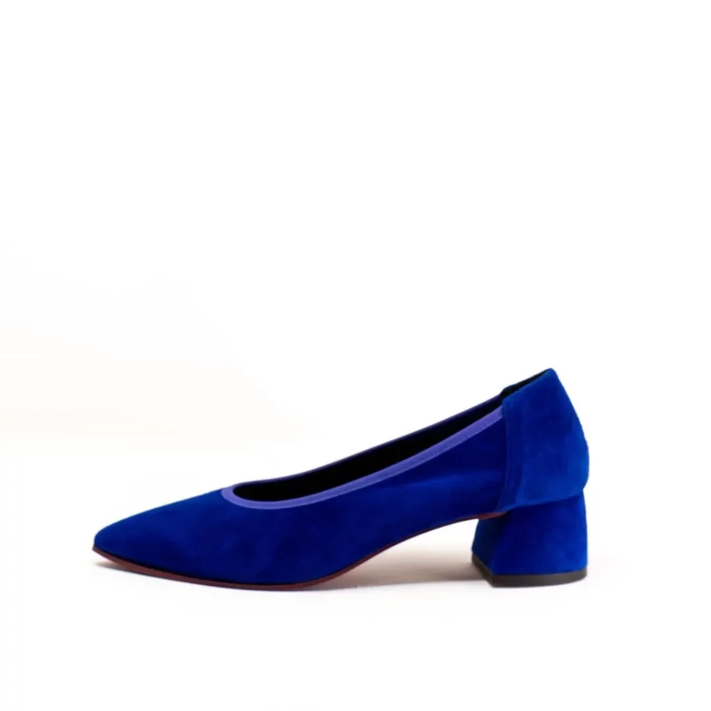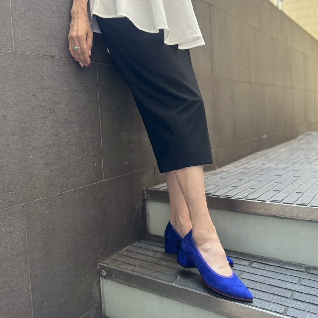 深みのあるディープブルーに、ラベンダーの縁取りが美しく映える上品なパンプス😊