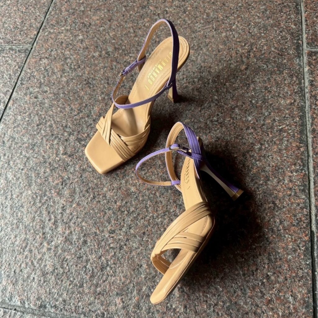 アンクルストラップを高めの位置で設定し、エレガント見え抜群の一足です😊
