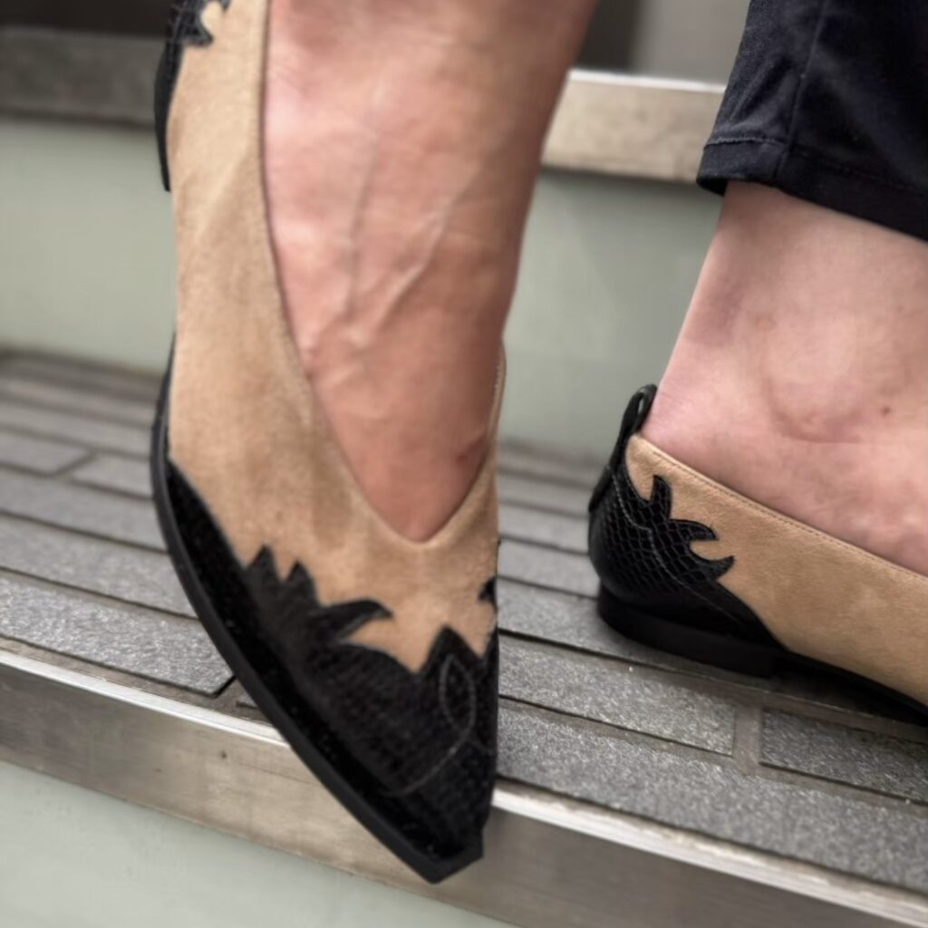 足馴染みの良いスエードレザーに、つま先と踵はブラックでウェスタンらしい強めのカットワークとなっております✨✨✨